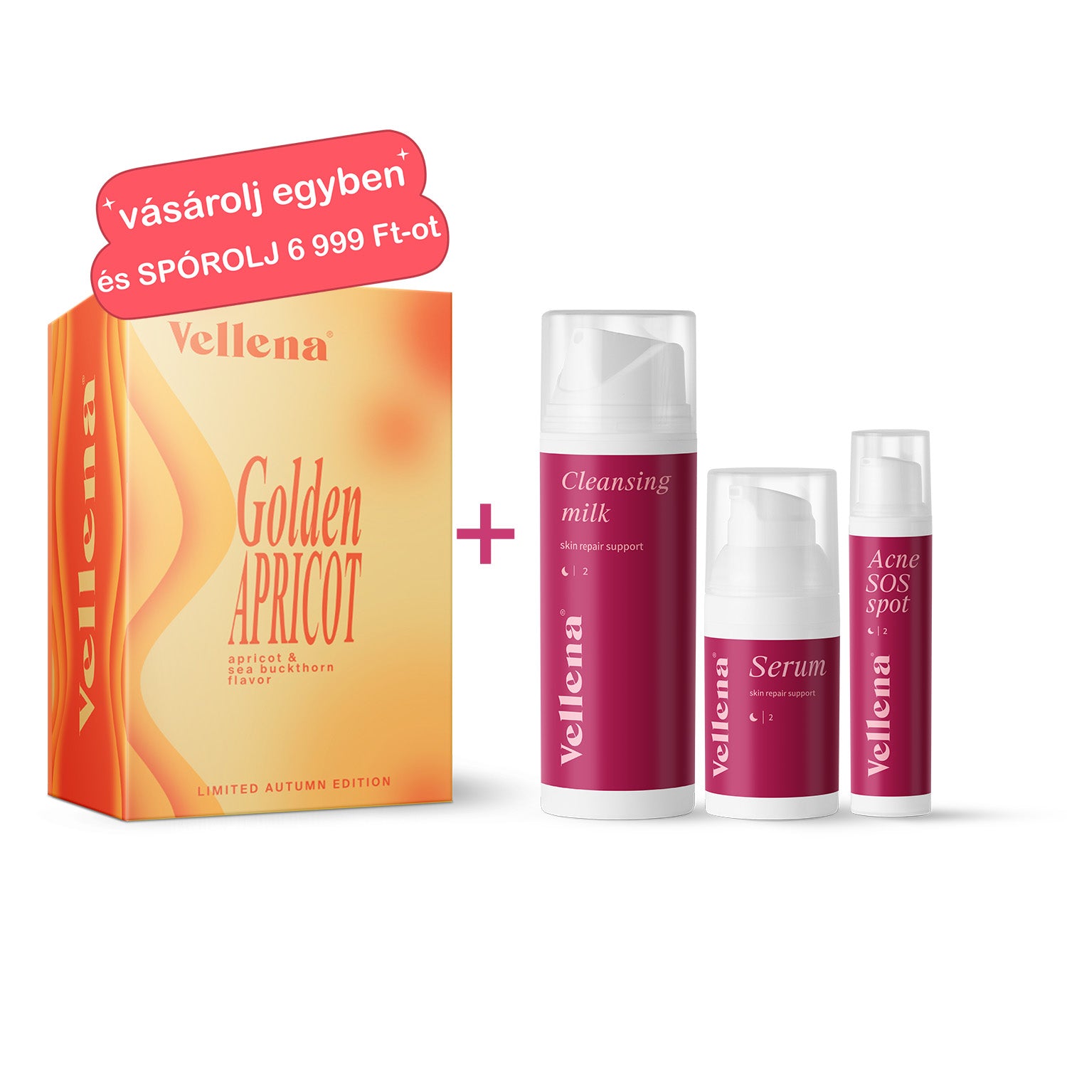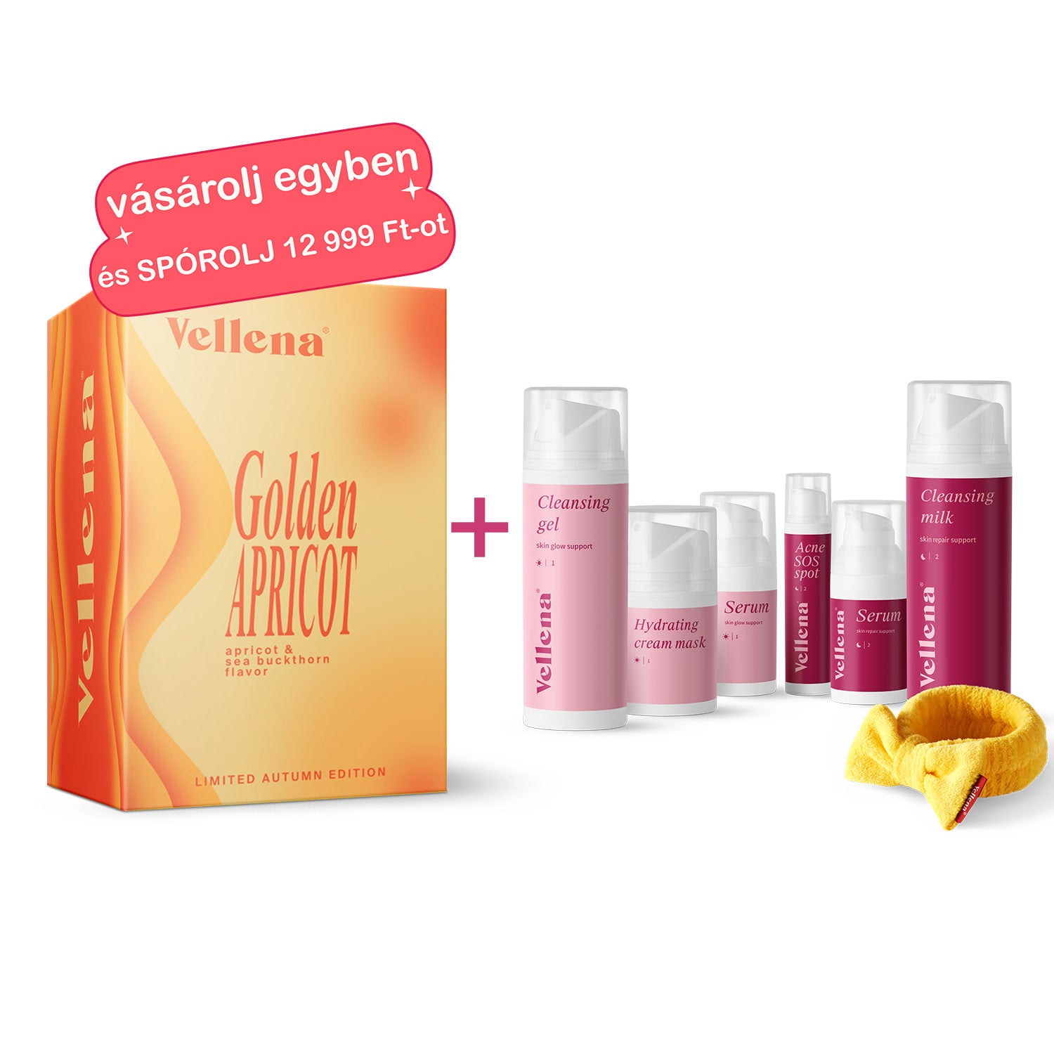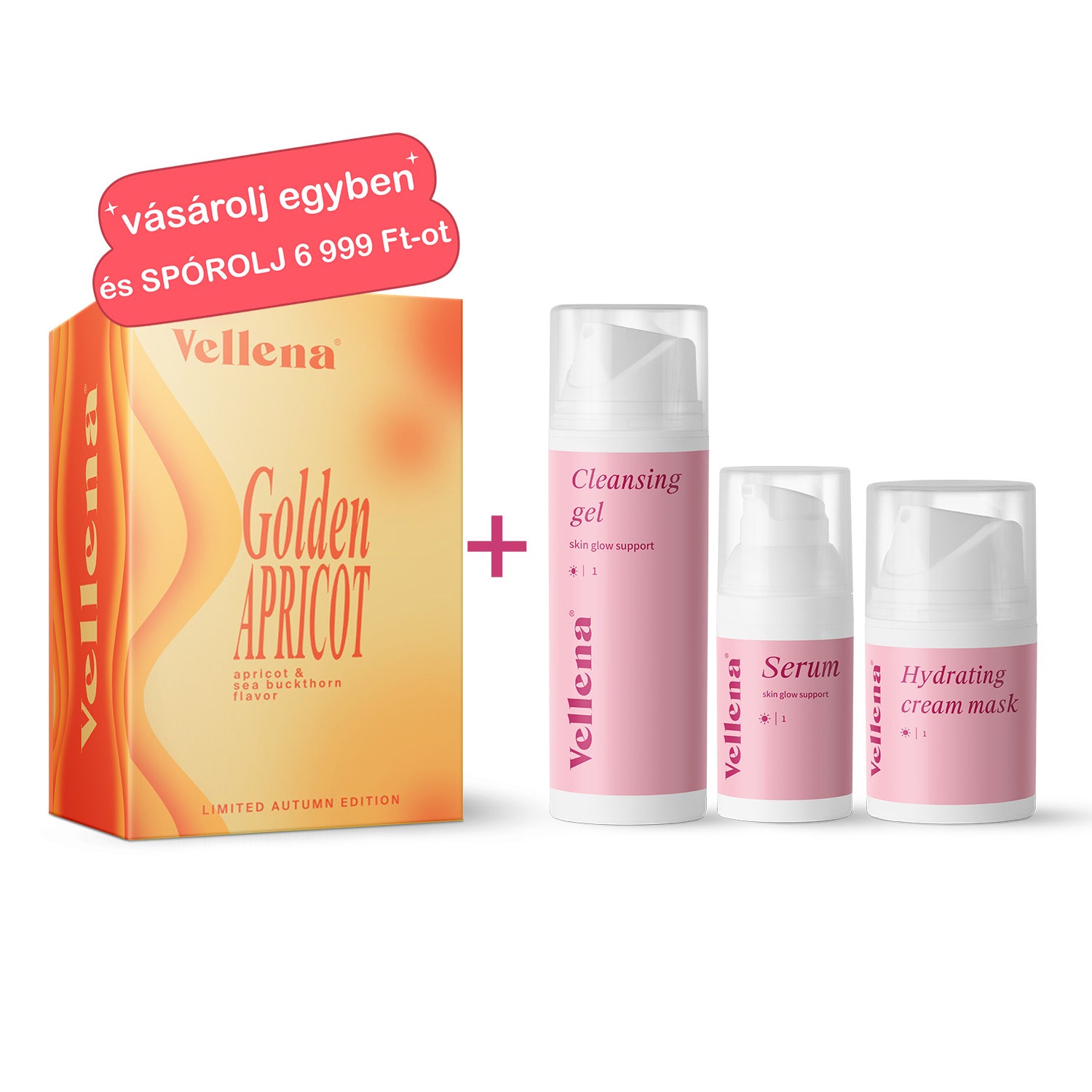 A limitált őszi ízű Vellena ital – Golden Apricot és a Vellena kozmetikumok egyedülálló kombinációja a gyönyörű bőrért.